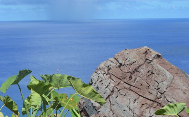 Point de vue depuis le champ de Tarua sur le sentier de Vaitumu Montagne. Sympathique et sportive petite marche en montée où la gourde d'eau est indispensable pour récompenser l'effort une fois arrivé en haut.